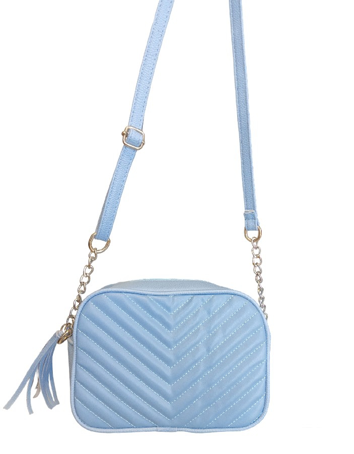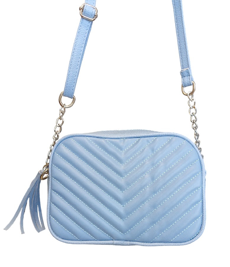 Bebe mavisi dikiş desenli sade çapraz omuz çantası